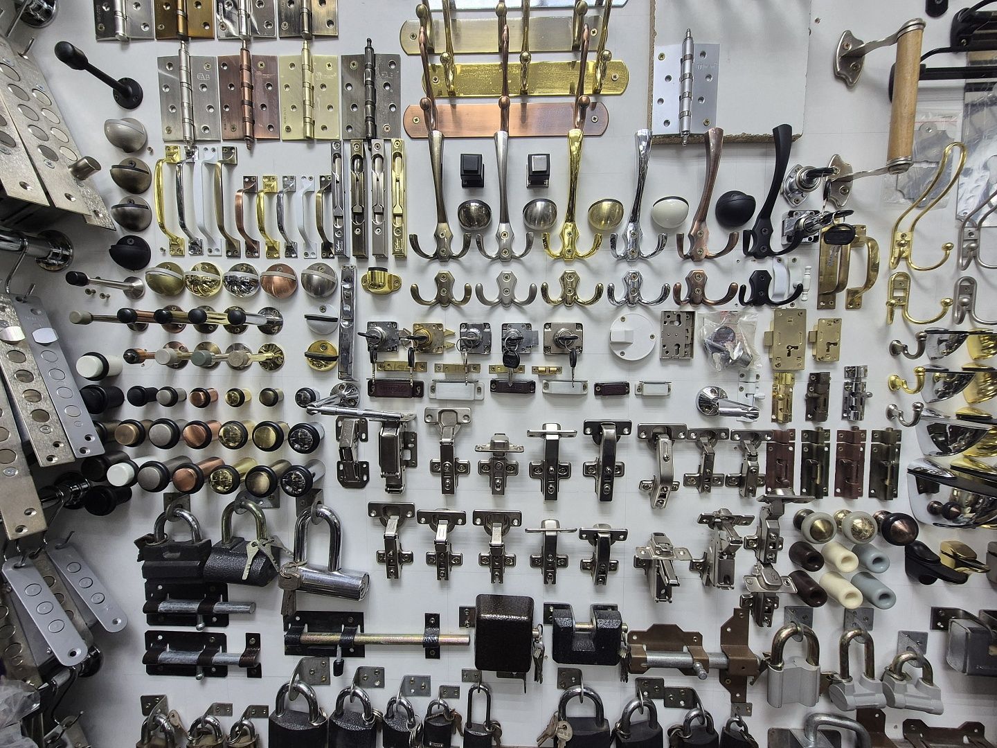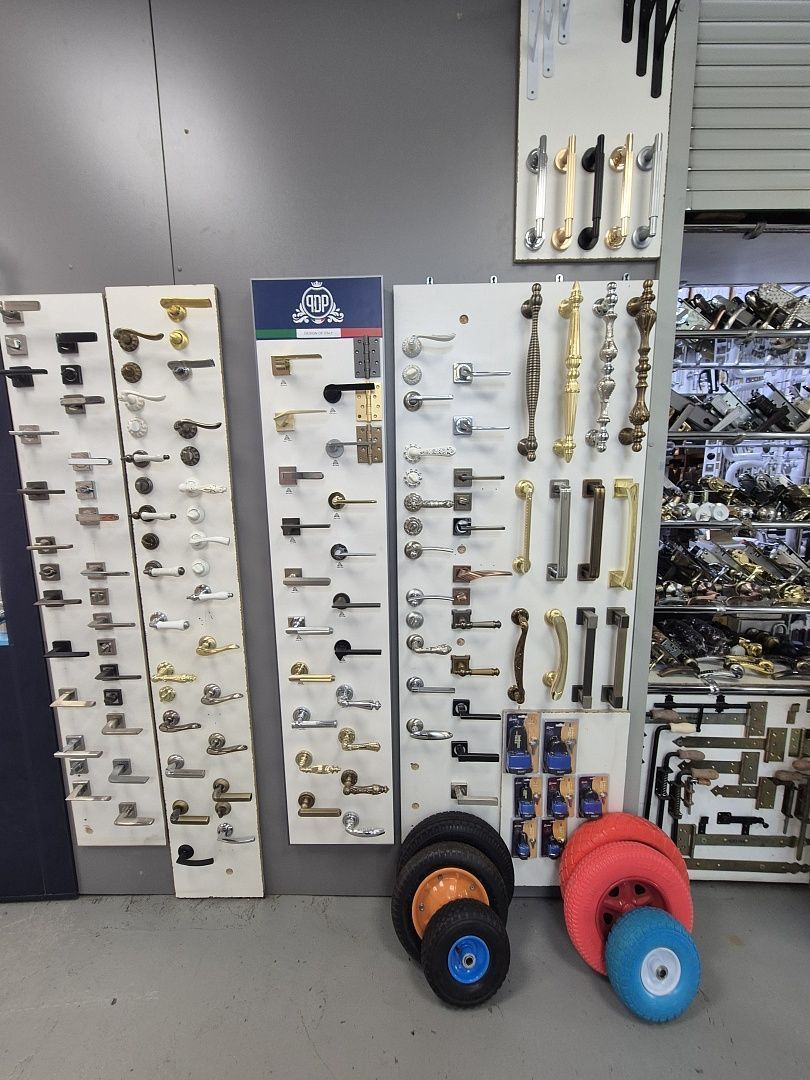 Ассортимент: задвижки: накладные, врезные, ручки, петли, доводчики, перила, стойки для перил, колеса, покрышки, мебельная фурнитура, направляющие для подвесных межкомнатных дверей, мебельные ножки, ножки для сола, арочный кронштейн, система джокер, петли калиточные, задвижки, кронштейны, личинка Чиза, Личинка Кале, Корпус замка Кале, Замок Чиза, механизм AGB, броненакладки, накладки шток, ручка поворотная, бесшумные магнитные, крестовой ключ, личинки, ролики для раздвижных дверей, фиксатор, дверные глазки, дверные упоры, электромеханические замки,