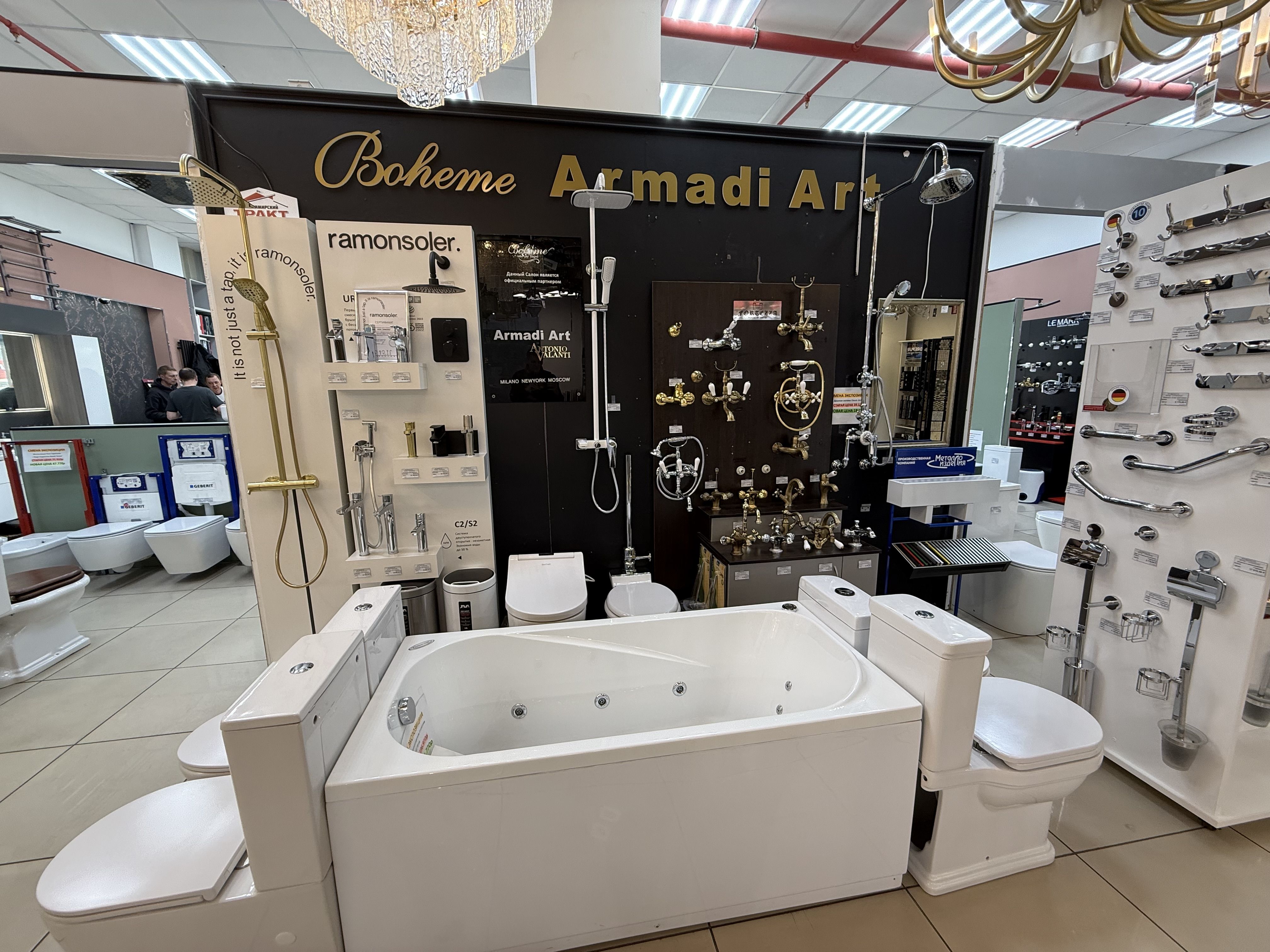 Бренды: Radaway, Grohe, Hansgrohe, Burlington, Tece, Geberit, CeramicaNova, Ravak, Viega, Bemeta,Тругор Сaprigo,Verona, IdealStandart, Abber, Alveus,Gemy, Kerasan, Kludi, Migliore, Riho, Shouder, Simas,Webert, RavSlezak, Аллигатор мебель, Cameya