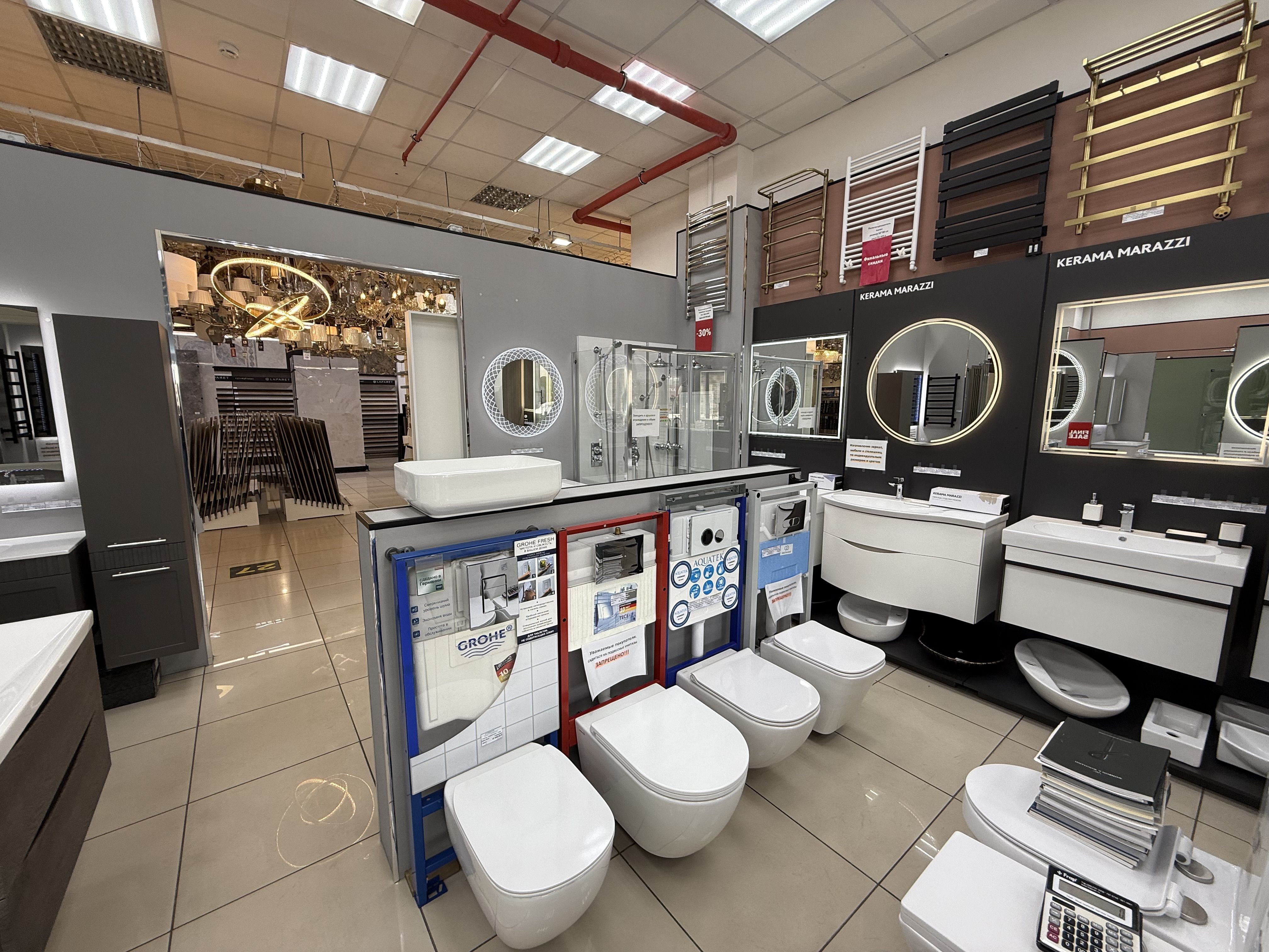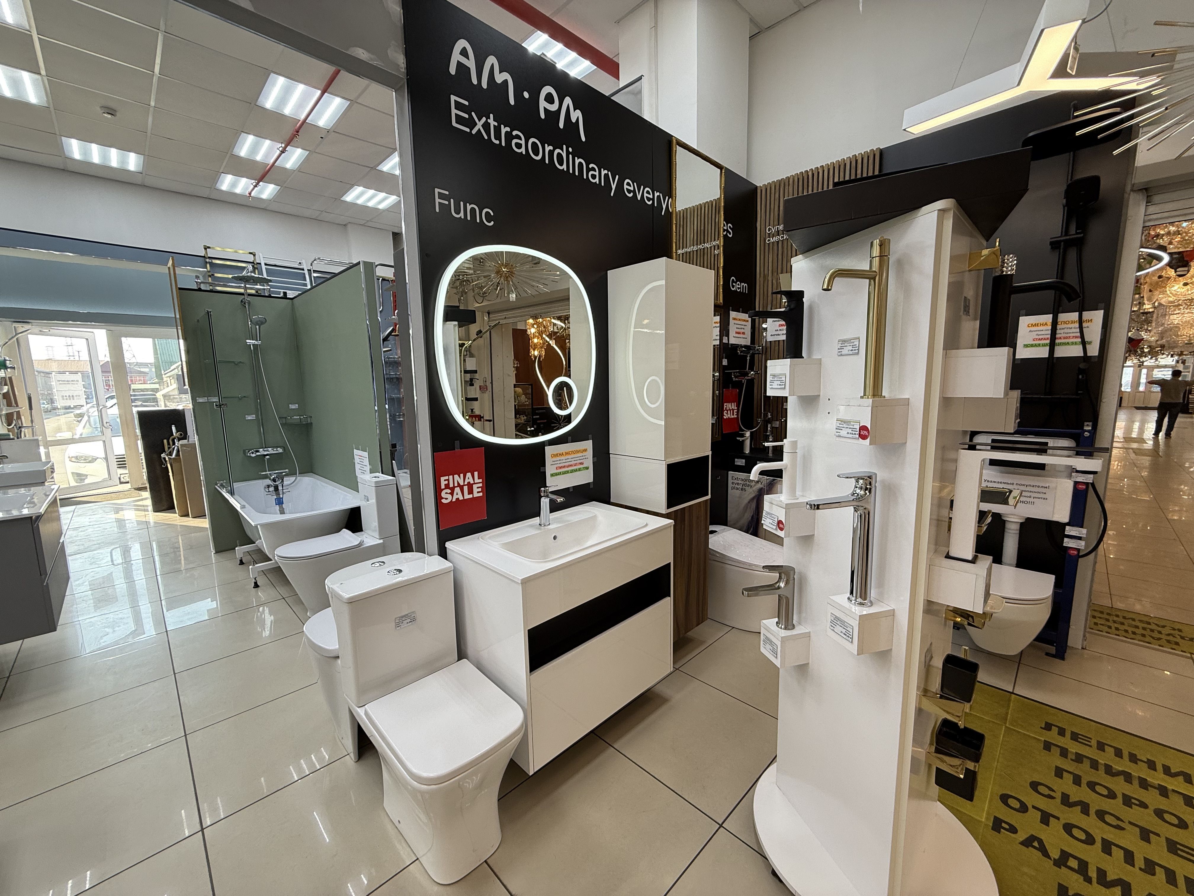 Ассортимент: Ванны, смесители, душевые кабины, мебель для ванн, аксессуары, унитазы, полотенцесушители