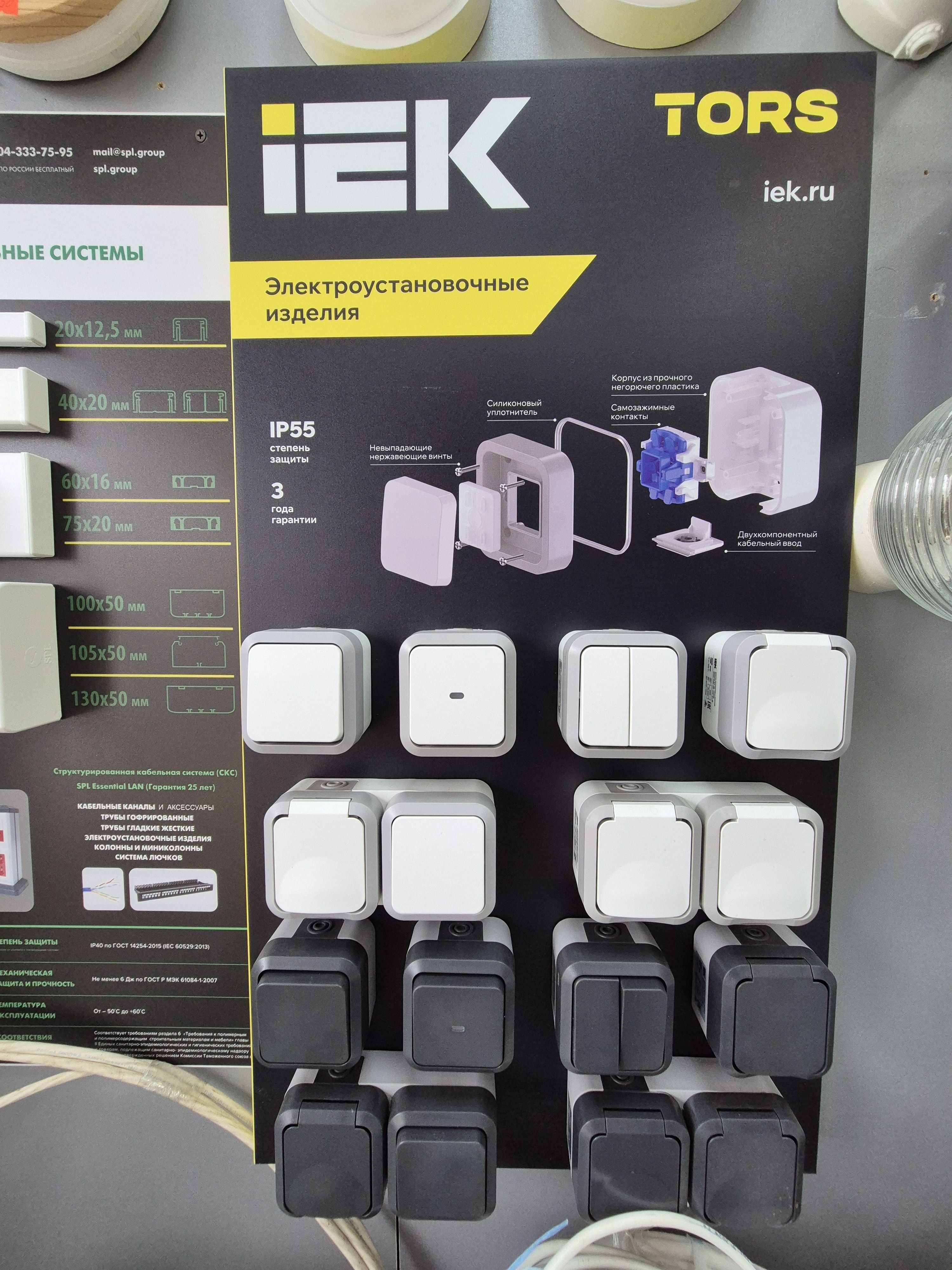 Бренды:Legrand, ABB, TDM, Heatline, Voltron, Gaus, Eberle, Текфор, КВТ, Ecola, Leeek, КВТ, Legrand, ЭРА, ИЭK, Промрукав
