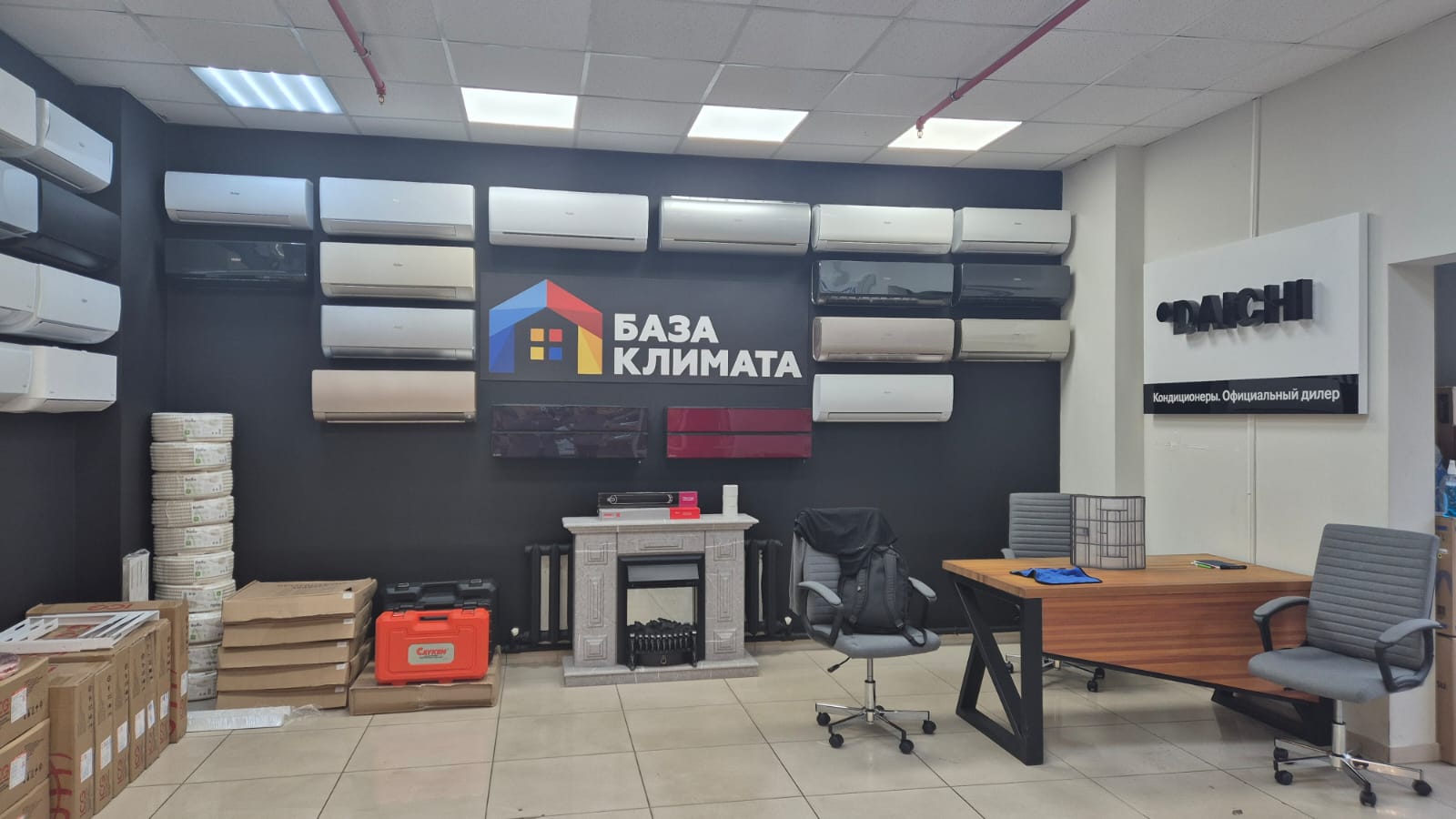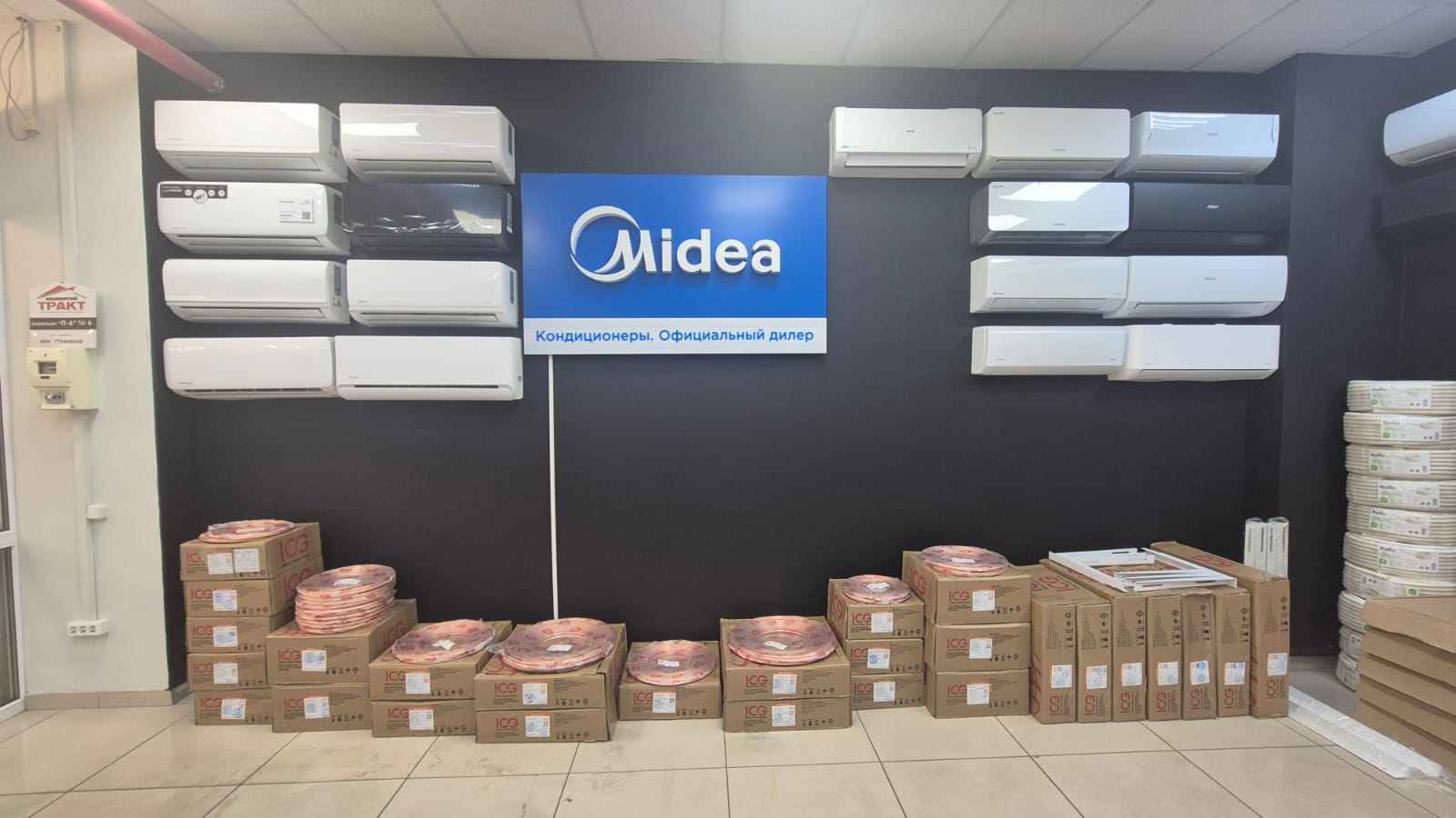 Ассортиментный перечень: Кондиционеры, Труба медная для фреоновой трассы, Фреон, Коронки для алмазного сверления, Удлинители для коронок, Дренажные помпы, Дренажные распылители, Дрели для алмазного бурения, Дренажный шланг, Кабель-канал, Тефлоновая лента, Утеплитель для фреоновой трассы K-flex.